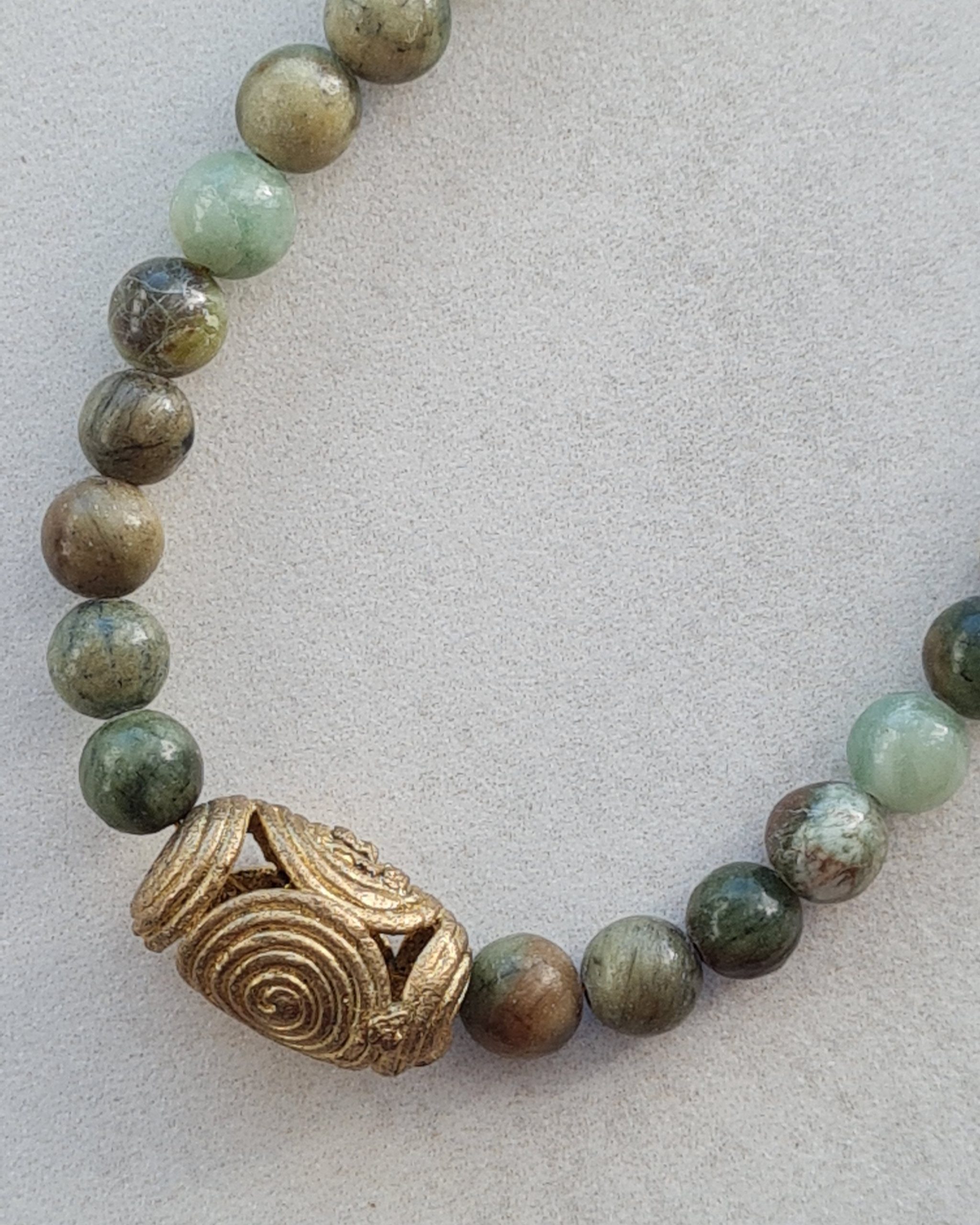 Collar artesanal de la colección Océano elaborado con piedras naturales cuidadosamente seleccionadas inspirado en el mar, sus paisajes y sus ritmos, donde el color y la materia son los verdaderos protagonistas.
