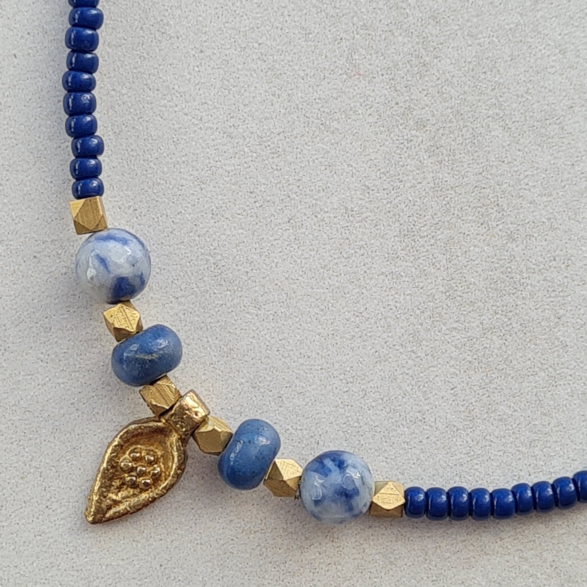 Collar artesanal de la colección Nepal Nira elaborado con piedras naturales y rocalla Miyuki, que junto al colgante crean una mezcla armónica de colores suaves y matices sutiles. Su diseño fluido transmite continuidad y naturalidad.