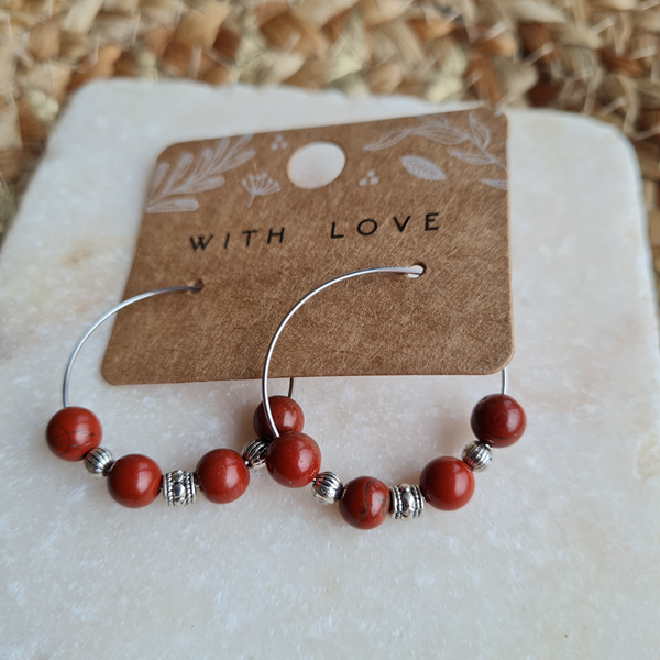 Pendientes de aro de acero inoxidable con cuentas de coco y cristal.